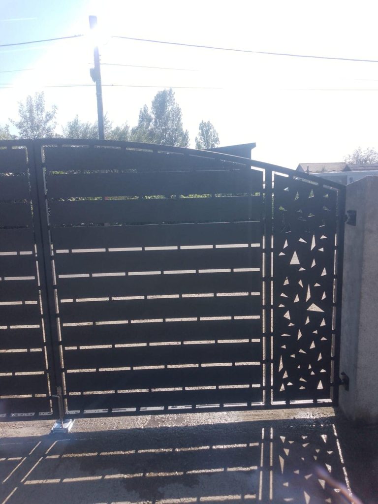 - Varietate în design: Porțile metalice pot fi proiectate într-o varietate de stiluri, de la tradiționale la moderne, și pot include elemente decorative, cum ar fi grilaje, ornamente sau feronerie artistică.